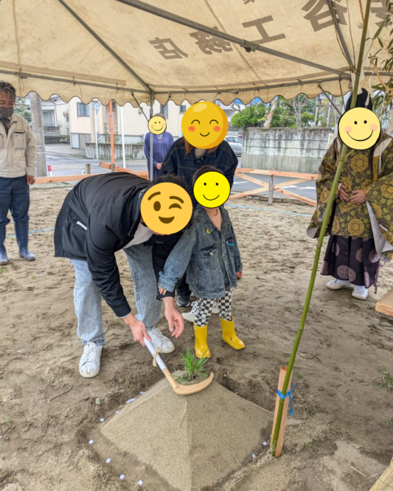 工事中の安全と家族が末永く安心して暮らせるように土地の神様に祈願しました。