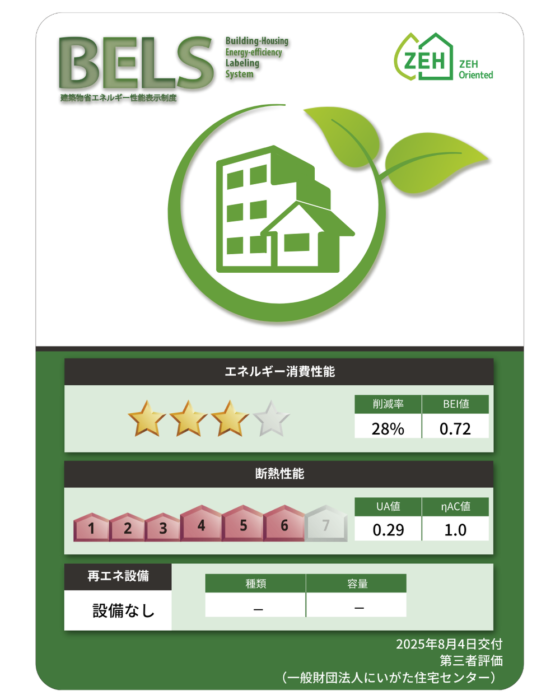 この住宅は、BELS(建築物省エネルギー性能表示制度)を利用して、