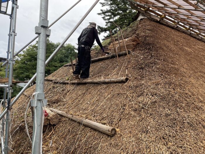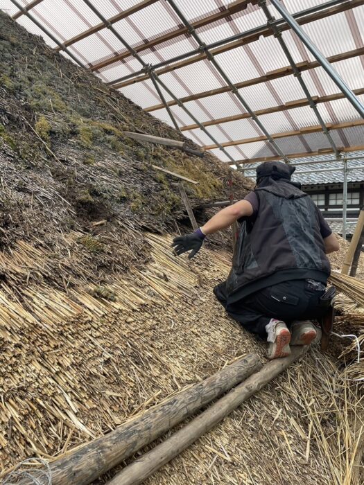 茅葺職人さんの手によって 古くなった茅が 取り除かれ 新しい茅が 丁寧に